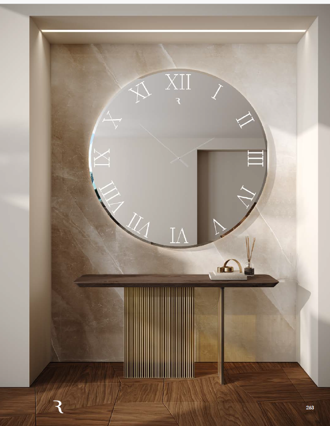 Base detail in Bronze glass with London engravings Bevel wood top in Canaletto Hennè Base in Bronze glass with London engravings 150 x 40 x 80 h
